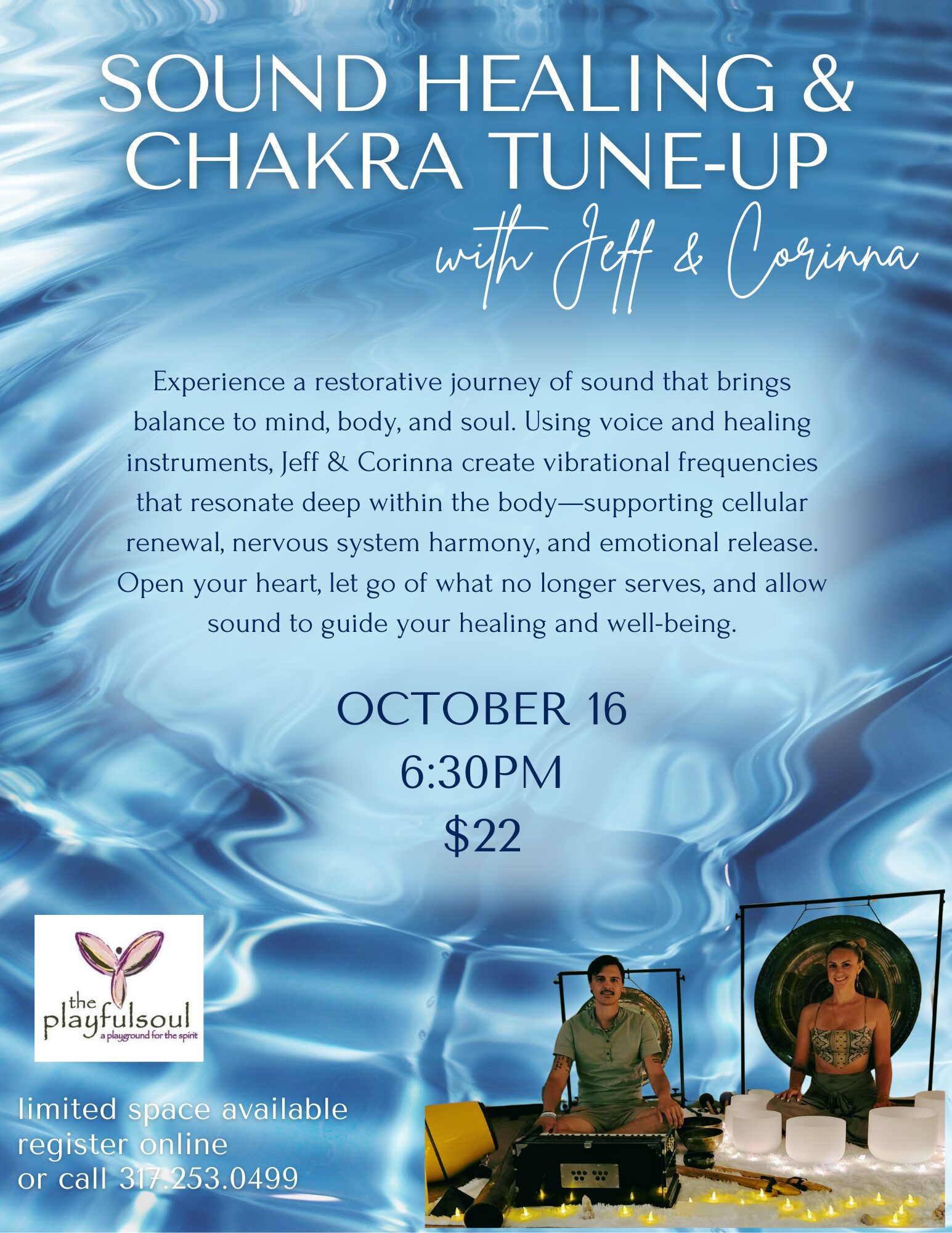 Experience a restorative journey of sound that brings balance to mind, body, and soul. Using voice and healing instruments, Jeff & Corinna create vibrational frequencies that resonate deep within the body—supporting cellular renewal, nervous system harmony, and emotional release. Open your heart, let go of what no longer serves, and allow sound to guide your healing and well-being. $22